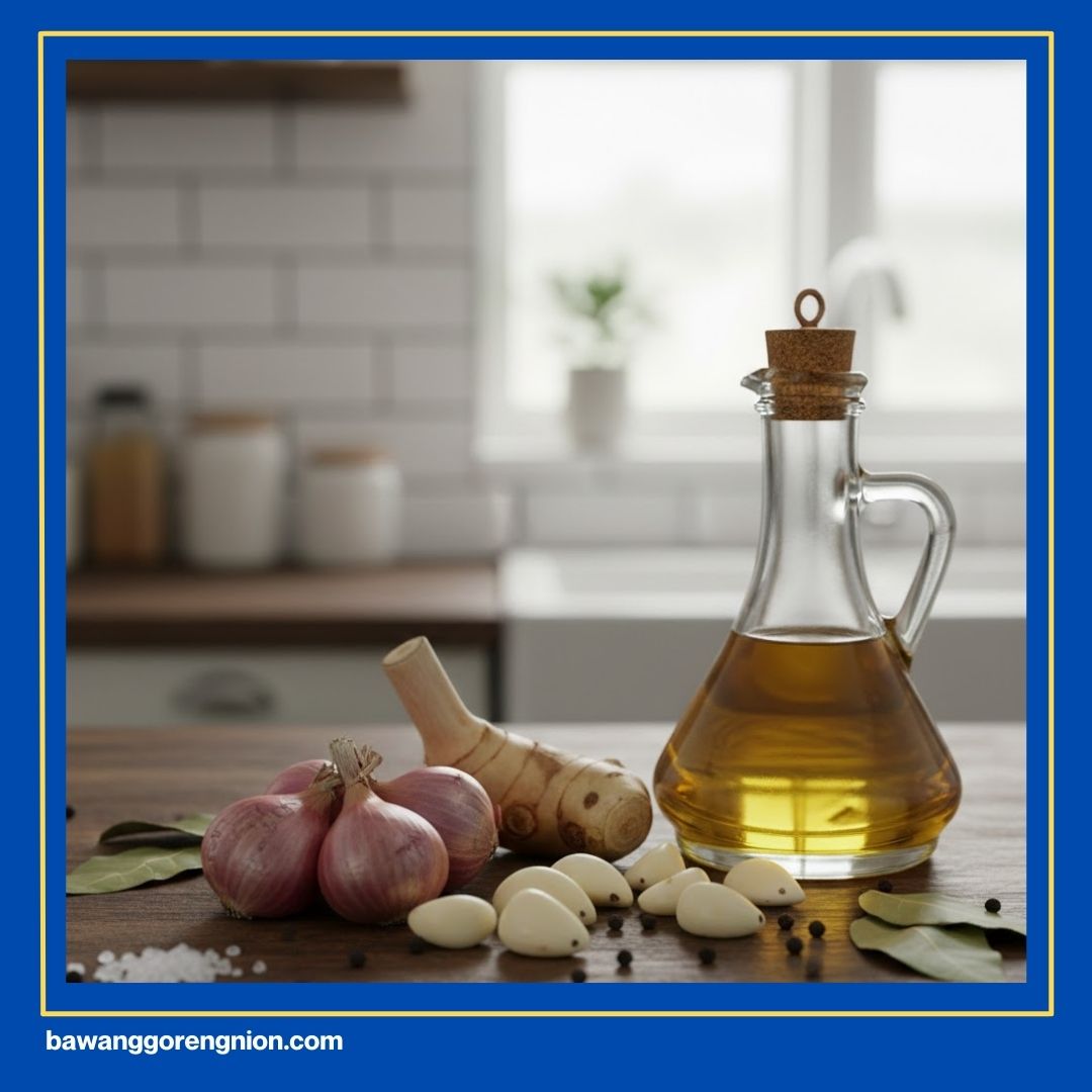 Minyak goreng punya fungsi rahasia sebagai lapisan pelindung alami bagi bumbu Kakak. Pastikan bumbu terendam sedikit minyak saat sudah masuk ke dalam toples. Lapisan minyak ini bertugas menghalangi udara luar agar gak menyentuh bumbu. Bakteri pun jadi enggan mampir ke situ.