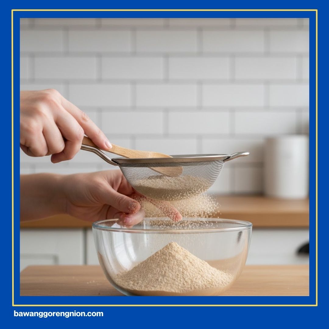 Mendapatkan tekstur yang halus sangat penting agar bumbu mudah larut. Kakak bisa menyaring bubuk yang sudah digiling memakai saringan yang sangat rapat. Hal ini dilakukan untuk memisahkan bagian bumbu yang masih kasar.