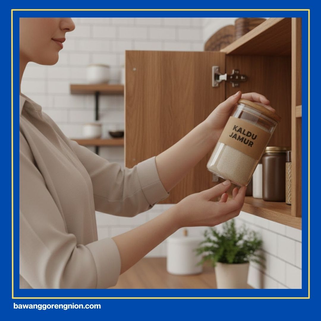 Kakak wajib pakai toples kaca yang punya tutup sangat rapat. Udara adalah musuh utama bumbu buatan sendiri ini, lho. Oksigen bisa bikin bubuk jamur jadi cepat menggumpal keras sekali.