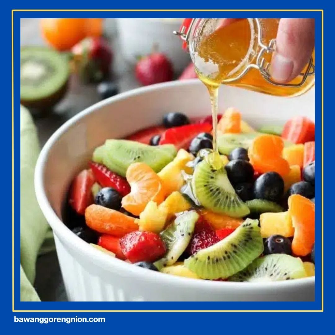 Pastikan kamu memilih buah yang masih sangat segar agar gizinya tetap terjaga. Siraman madu di atasnya bakal bikin nafsu makan kamu meningkat drastis. Menu ini sangat pas buat menjaga berat badan saat puasa.