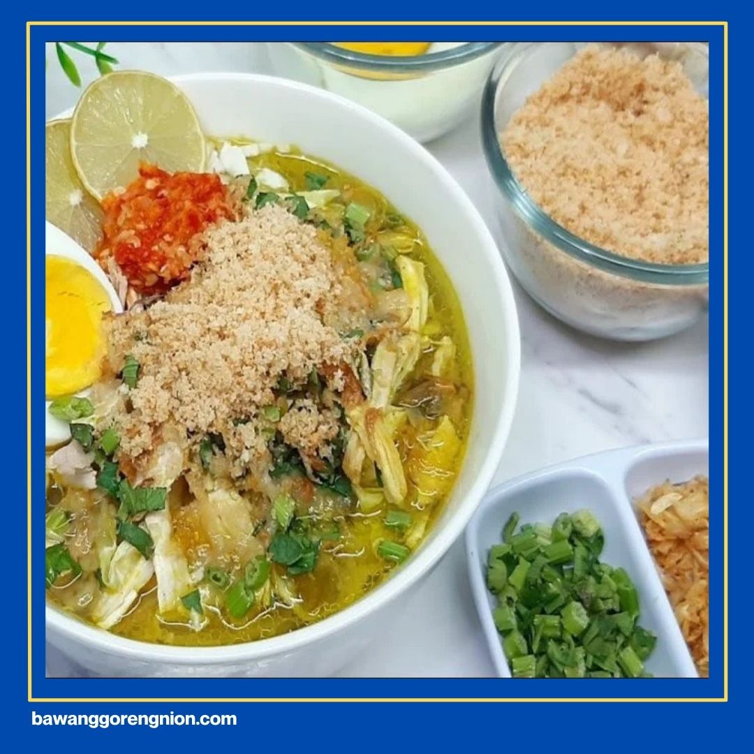 Bagi pecinta kuliner soto, soto lamongan pasti punya rasa yang khas bagi pecinta soto sendiri. Ciri khas utamanya adalah taburan koya yang bikin kuahnya jadi makin kental. Kamu bisa merebus ayam sampai empuk lalu menyuwirnya kecil-kecil. Jangan lupa gunakan bumbu kunyit agar warnanya kuning cantik.
