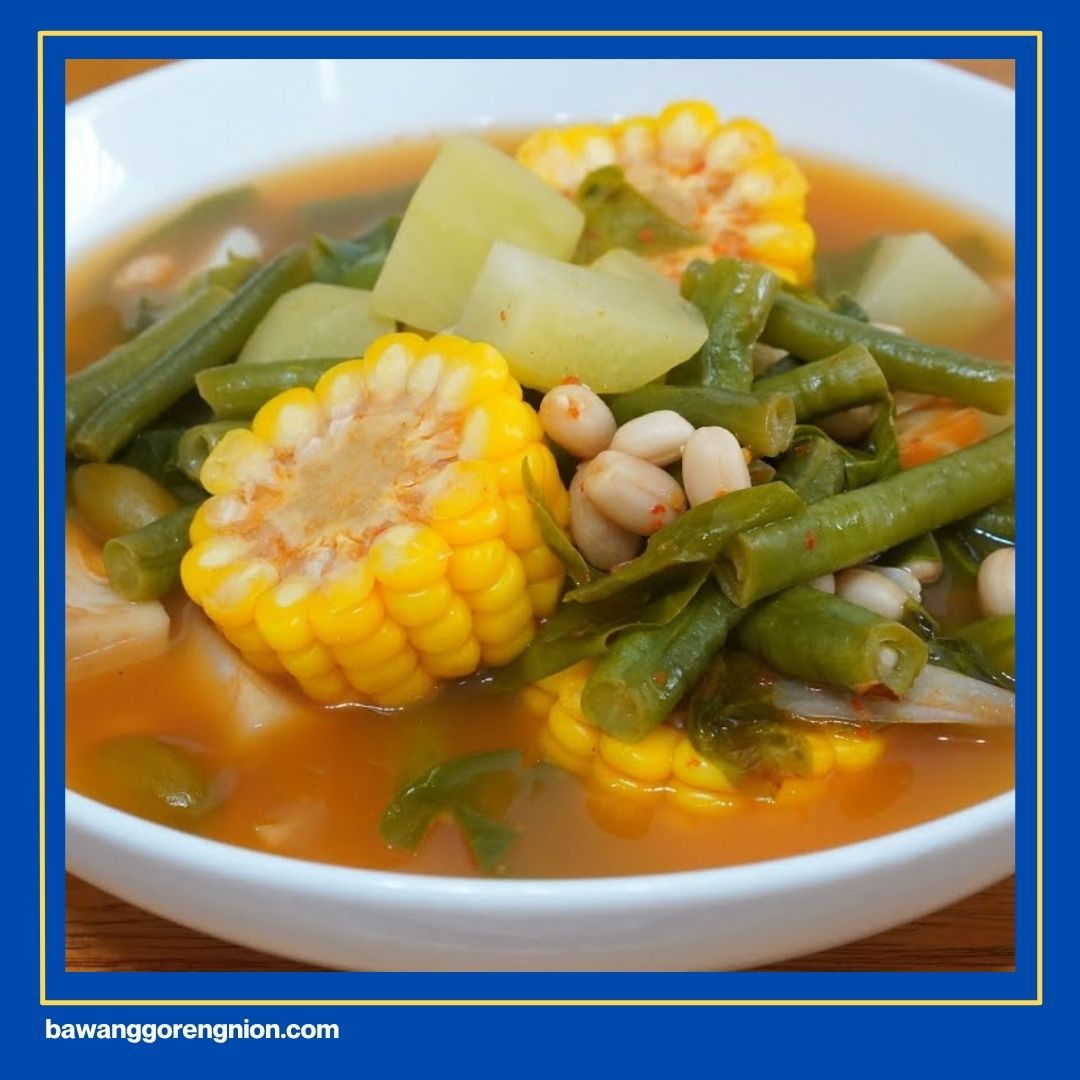 Sayur asem versi Jawa Tengah punya rasa manis dan asam yang seimbang. Isiannya sangat lengkap mulai dari jagung manis, labu siam, hingga kacang tanah. Kamu perlu menggunakan asam jawa asli agar rasa segarnya alami dan menyehatkan. Masak semua sayuran sampai teksturnya empuk.