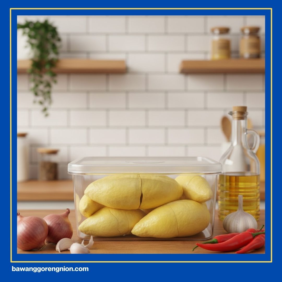 Kakak harus memastikan sambal sudah dingin sebelum masuk ke wadah kaca. Gunakan toples yang sudah disterilkan agar kuman gak mudah masuk ke sana. Tutup rapat wadah tersebut supaya aroma durian gak keluar memenuhi seluruh ruangan kulkas.