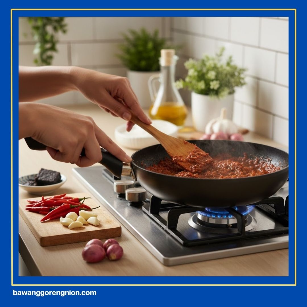- Aduk terus sampai warna sambal berubah menjadi sedikit agak kecokelatan.