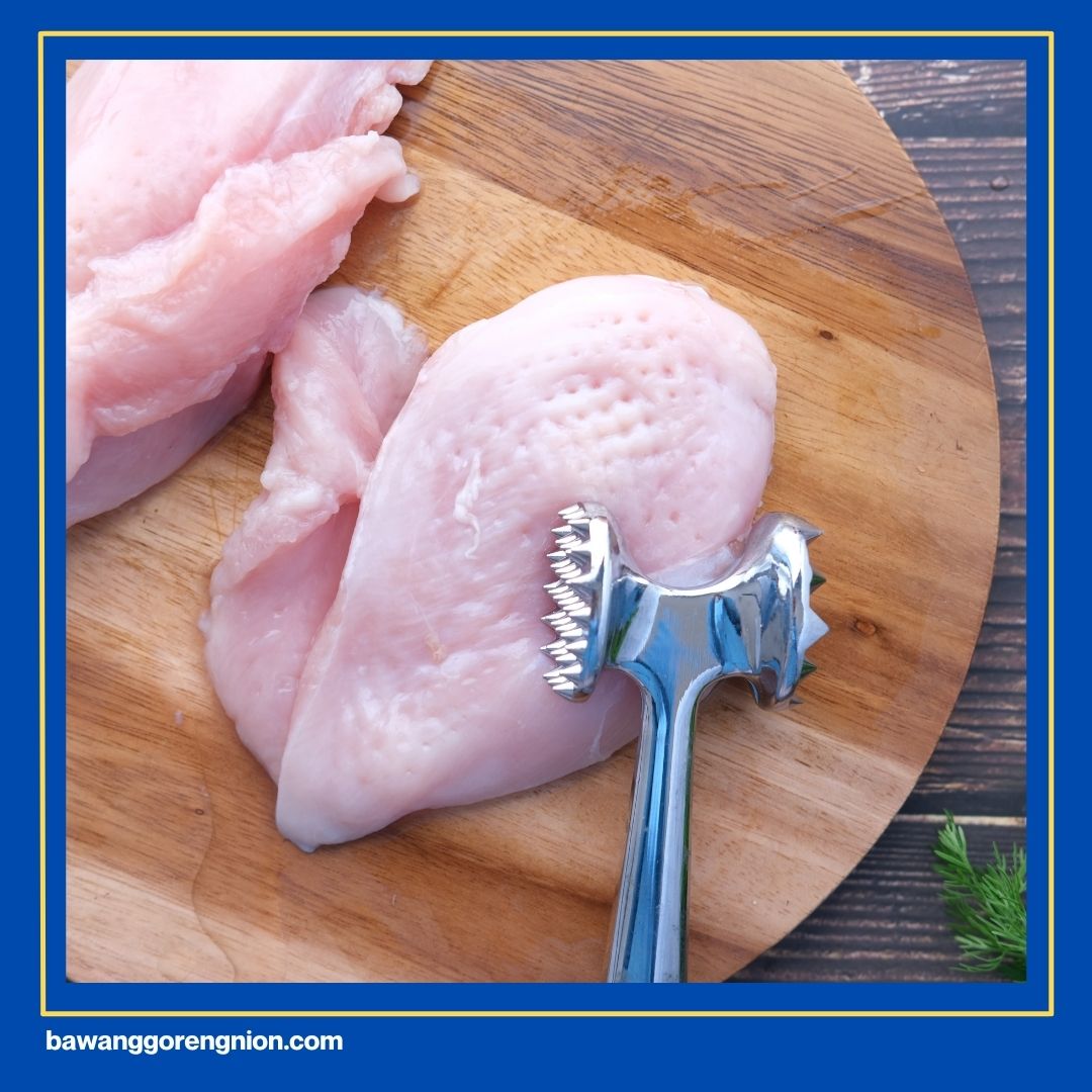 Nanas mengandung enzim bromelain alami yang sangat hebat untuk membantu melunakkan tekstur daging yang terasa sangat keras. Kamu bisa menggunakan parutan nanas sedikit saja agar serat ayam menjadi lebih rileks sebelum masuk ke wajan. Namun, jangan merendamnya terlalu lama supaya daging tidak berubah menjadi terlalu lembek atau hancur.